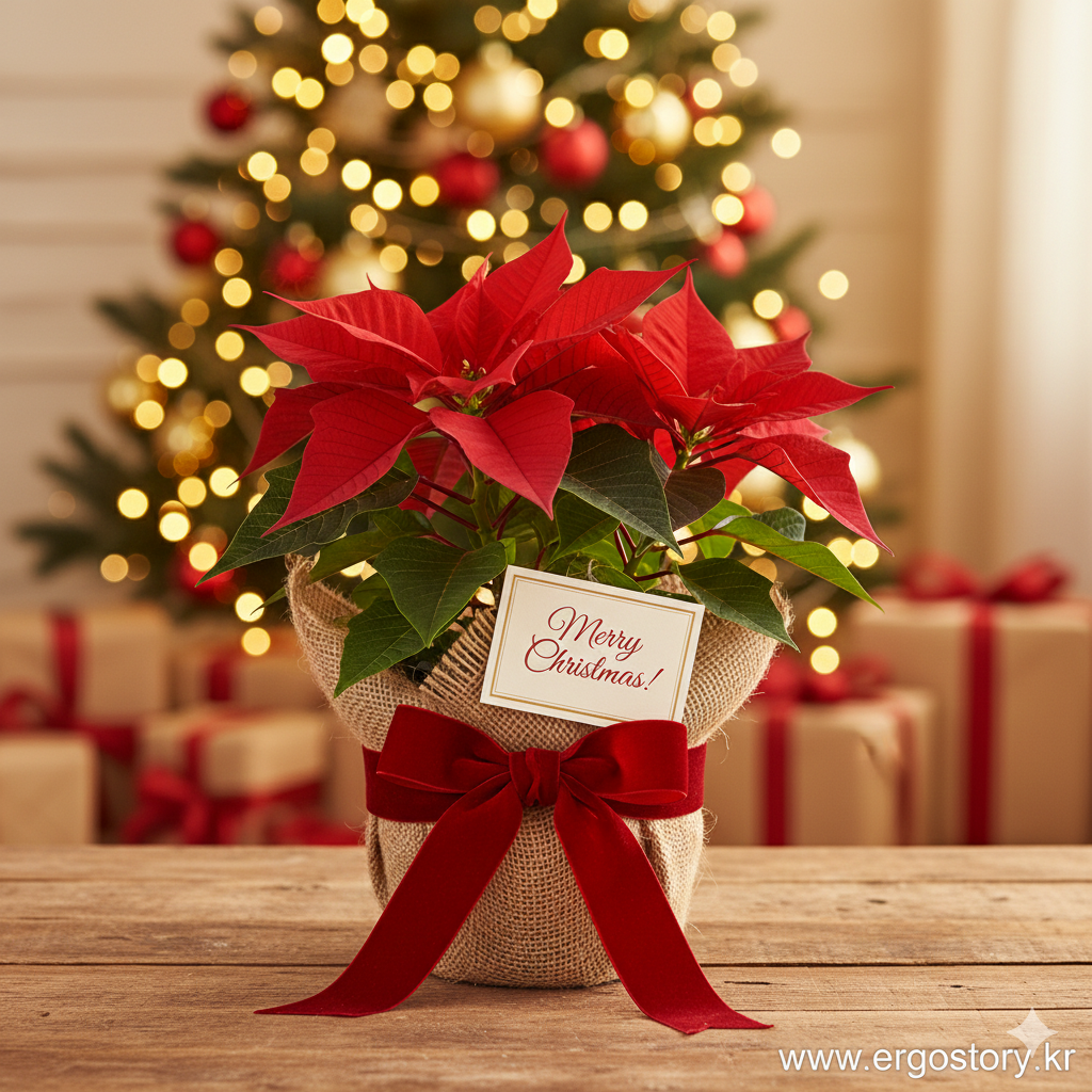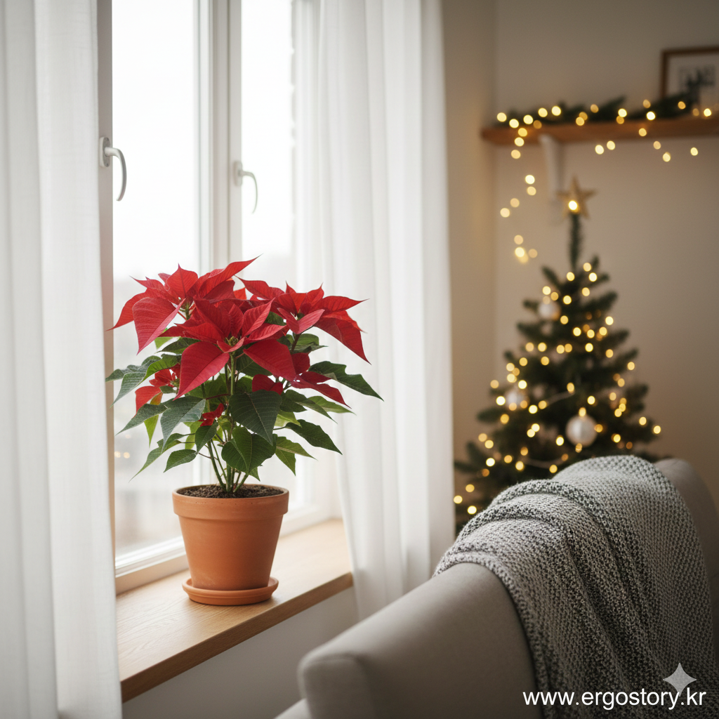 4. 장식 효과 - 트리 없이도 포인세티아 하나로 분위기 완성