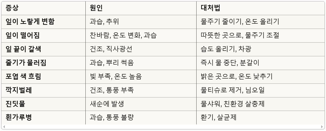* ❌ 직사광선: 여름철 강한 직사광선은 잎을 태울 수 있음