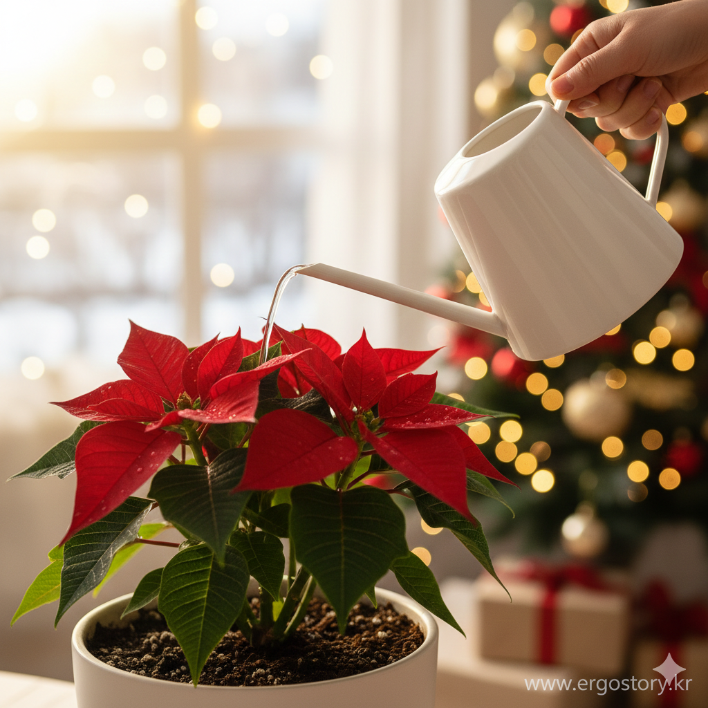 포인세티아는 과습에 매우 약한 식물입니다. 건조하게 관리하는 것이 기본입니다.