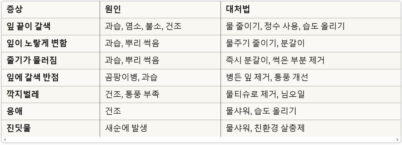 * 물: 흙이 충분히 마른 후 주기 (과습 금물!)