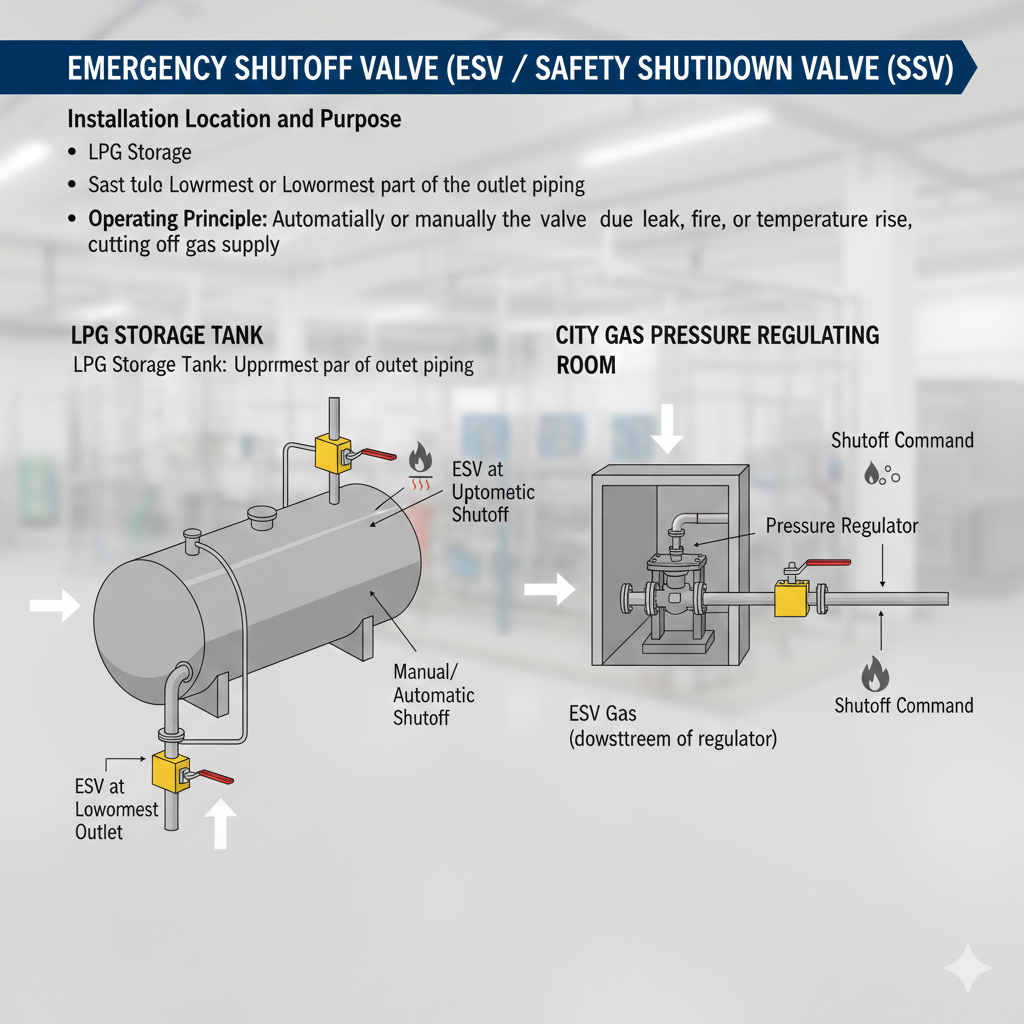 긴급차단장치(Emergency Shutoff Valve, ESV) 또는 안전차단밸브(Safety Shutdown Valve, SSV)
