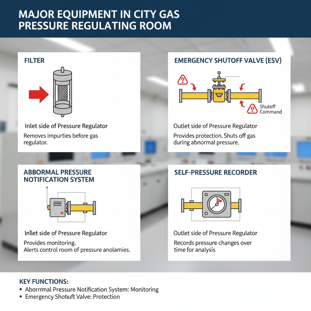 | 긴급차단장치 | 정압기 출구 | 비정상 압력 시 즉시 차단 |